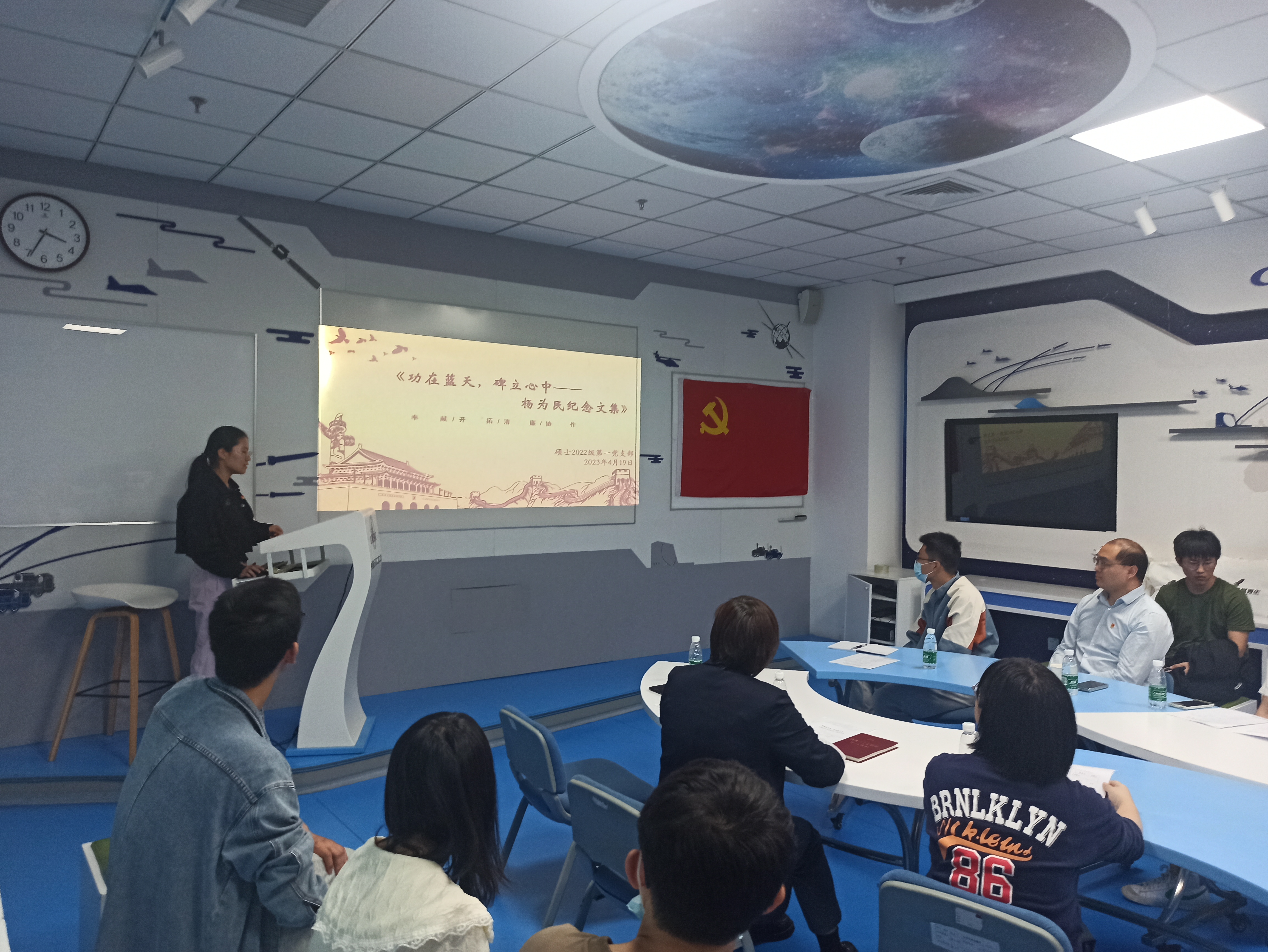 随后,九室党支部先同大家分享了2022感动中国十大人物中航天功勋沈忠芳先生为国铸盾,隐姓埋名的事迹。之后九室党支部的同志代表同大家分享了《导弹人生》读书心得。《导弹人生》讲述了12位已脱密各型号导弹总指挥总设计师的生平,他们艰苦朴素,奋斗终身,为了我国国防事业奉献了毕生精力,而作为新时代共产党员,我们要认真贯彻党的二十大精神,守正创新,将这份沉甸甸的“可靠航天梦”不断传承下去。可靠性学院硕士2022级第一党支部的韩若然则同大家分享了《功在蓝天,碑立心中——杨为民纪念文集》的读书体会,通过介绍我国可靠性事业的奠基人杨为民老师生平事迹和可靠性学院师生代代相传的为民精神,让同志们再次感受杨老师的精神风貌,从中汲取奋斗力量。