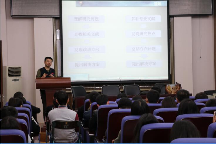 康老师结合自己的科研经历与亲身体会,就写作思路,论文阅读,投稿注意事项等方面进行了阐述。康老师着重强调阅读文献的重要性,冰冻三尺非一日之寒,一篇论文的完成需要长期的积累、积淀。同时康老师对同学们提出了严格要求,要做到踏实做科研,抓住细节,善于发现,知行合一!
