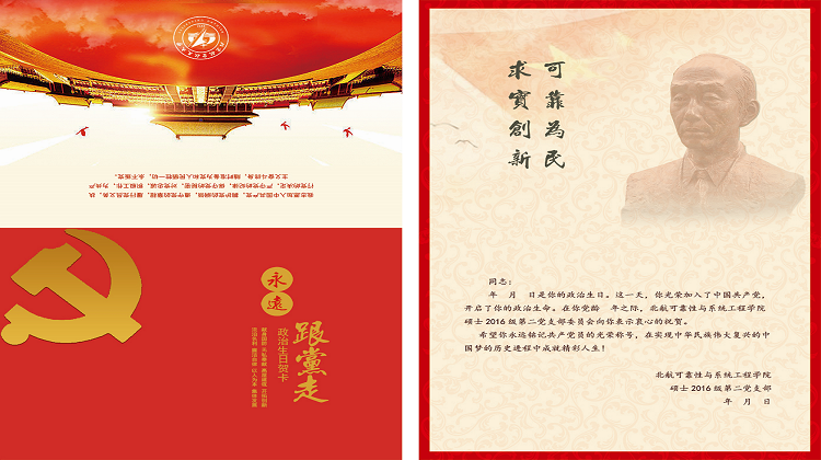 “政治生日”贺卡一经推出,得到了支部党员的一致好评。首位收到贺卡的支部党员宋登巍说道:“收到贺卡很激动也很温暖,让我又想起了入党时的誓言。马上要召开的北航第十六次党代会是我们学生党员的一件大事,我们更应该时刻牢记自己的‘第一身份是党员’,在学习工作生活各方面充分发挥先进性”。