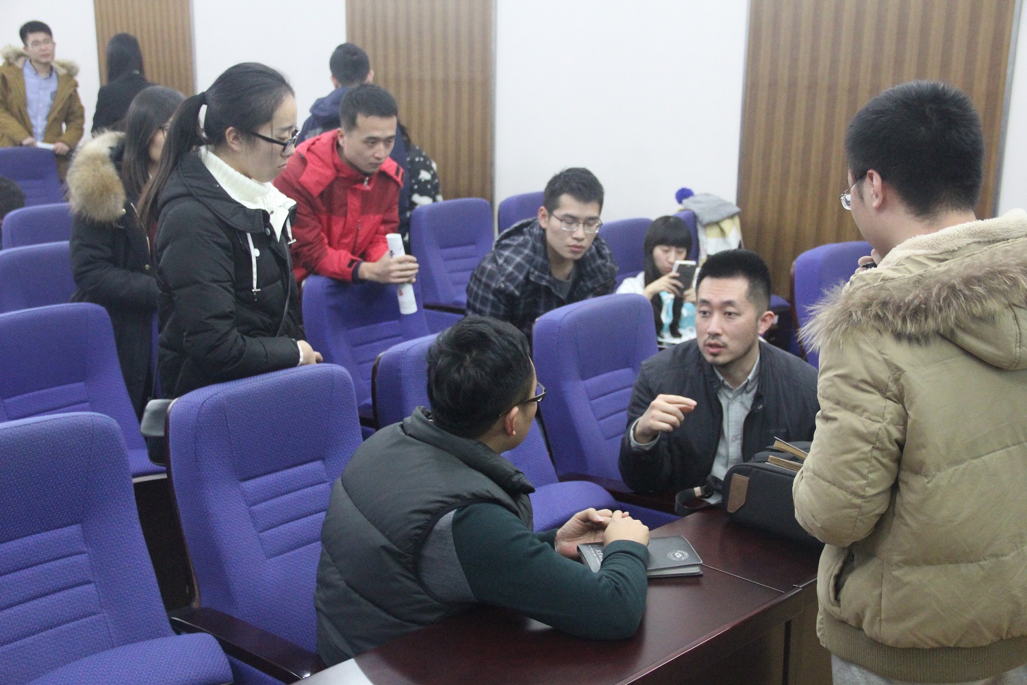 会议结束后,同学们纷纷来到讲台前,就自己对“可靠性+”相关方面的理解与李教授进行了探讨。面对同学们存在的疑惑,李教授耐心地一一解答,同学们更是围成一团,悉心听取教授的讲解,并对李教授的亲切倍感温馨。临离场之时,在同学们盛情邀请之下,李教授以及分团委书记邵英华与同学们一同进行了合影留念,将这难忘的时刻永远的保存下来。