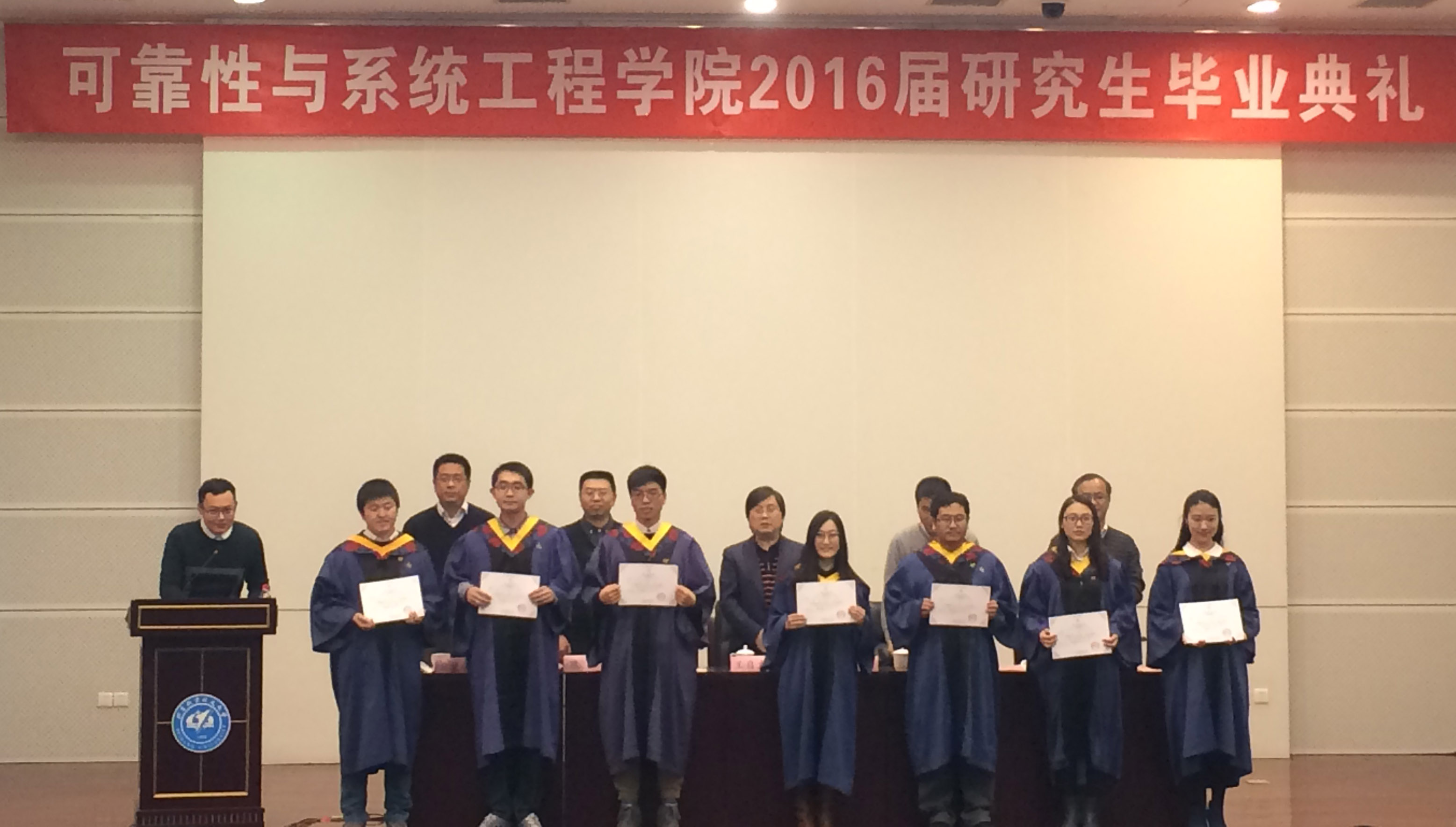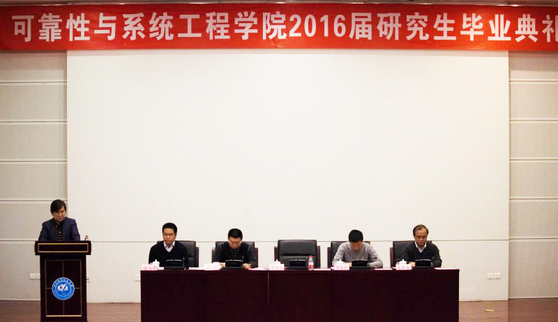 毕业典礼在雄壮的国歌声中拉开了序幕,院长王自力教授致毕业贺词,他希望同学们做一名敢于担当,甘于奉献,严谨扎实,求实创新,可靠为民的可靠性人。语重心长的嘱咐毕业生们认真规划自己的人生,要有自己的人生目标,一路进取,勇攀高峰。