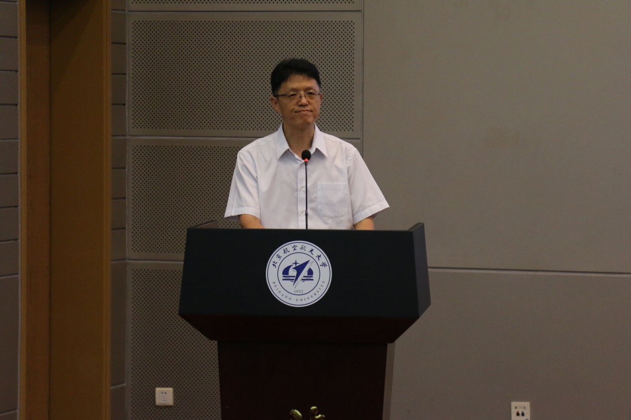 导师代表任羿教授首先代表学院全体教师对2018级研究生加入北航可靠性“大家庭”表示欢迎,任羿老师以自身求学时的经历为切入,鼓励同学们要有“仰望星空”的自信,更要有“脚踏实地”的努力,在研究生求学阶段追求一流成果的同时也要恪守诚信,学会独立思考、专注于学术,更要学会合作、全面发展,实现属于“可靠青年”的梦想。
