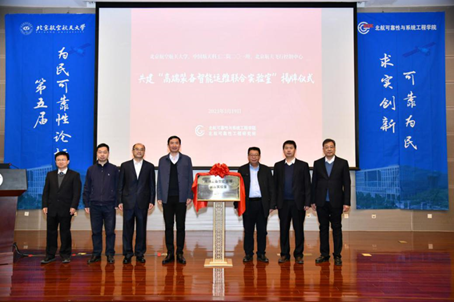 活动第一项,举行“高端装备智能运维联合实验室”揭牌仪式。永利集团304am登录、中国航天科工二院二〇一所、北京航天飞行控制中心三所高校企业代表共同揭牌。