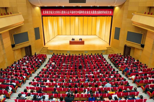 赵长禄指出,开展学习贯彻习近平新时代中国特色社会主义思想主题教育,是推动贯彻党的二十大战略部署的有力举措,是深入推进新时代党的建设新的伟大工程的重大部署。习近平总书记在主题教育工作会议上深刻阐述开展主题教育的重大意义和目标要求,为全党开展主题教育提供了根本遵循。全校各级党组织和广大党员要深入学习贯彻习近平总书记重要讲话精神,切实把思想和行动统一到中央决策部署上来,不折不扣抓好贯彻落实。一是要提高政治站位,深刻领会主题教育的重大意义。开展主题教育对于推动全党更加深刻领悟“两个确立”的决定性意义,更加自觉增强“四个意识”、坚定“四个自信”、做到“两个维护”,具有十分重大的意义;对于贯彻新发展理念、构建新发展格局、推动高质量发展,推进中国式现代化,完成党在新时代新征程的使命任务,具有十分重大的意义。要在全面学习、全面把握、全面落实党的二十大精神上下功夫,坚持党对学校工作的全面领导,心怀“国之大者”,为以中国式现代化全面推进中华民族伟大复兴提供强大人才支撑,做出一流创新贡献。二是要统一思想认识,准确把握主题教育目标任务要求。要牢牢把握“学思想、强党性、重实践、建新功”的总要求,坚持学思用贯通、知信行统一,着力解决6个方面的突出问题。要坚持思想引领、目标导向、问题导向、宗旨意识相结合,牢牢把握新时代新征程赋予北航的历史责任,紧紧围绕北航教育事业发展面临的风险挑战,紧紧抓住师生关切的矛盾问题,通过开展好主题教育,推动学校事业高质量内涵式发展。三是要强化责任担当,确保主题教育扎实有序开展。要扎实开展理论学习,夯实捍卫“两个确立”、做到“两个维护”的思想根基。要深入开展调查研究,真正把调研成果转化为解决问题、促进发展的实际行动。要努力推动学校各项事业高质量发展,切实把学习成效转化为发展实效。要认真深刻检视整改,不断强化党性修养、推进自我革命。要建章立制、久久为功,持续巩固深化主题教育成果。四是要强化组织领导,推动主题教育走深走实。要坚决扛起主体责任,全面加强组织领导,注重强化工作统筹,广泛做好舆论宣传,切实改进工作作风,努力在以学铸魂、以学增智、以学正风、以学促干方面取得实实在在的成效。赵长禄表示,全校各级党组织和广大党员要以习近平新时代中国特色社会主义思想凝心铸魂,把干事创业的能力提起来,把敢为人先的势头扬起来,把真抓实干的作风立起来,把团结奋斗的合力聚起来,以推动高质量发展的新成效检验主题教育成果,以空天报国、立德树人的实际行动交出北航人的答卷。