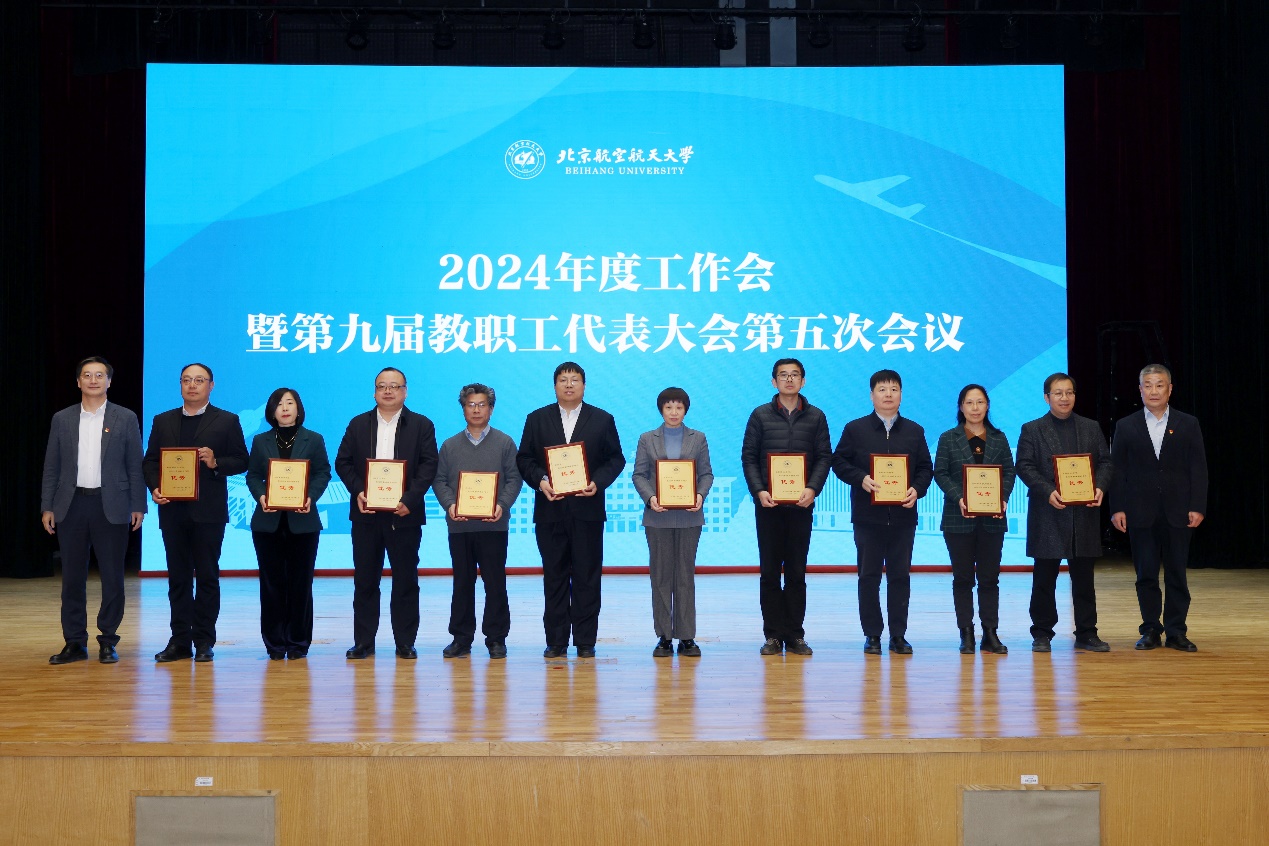 会上表彰了2023年度机构考核优秀单位,材料科学与工程学院、自动化科学与电气工程学院、能源与动力工程学院、航空科学与工程学院、计算机学院、宇航学院、沈元学院、马克思主义学院、航空发动机研究院、集成电路科学与工程学院、党政办公室、党委组织部、学生工作部、教务部、人力资源部、计划财务部、学生中心、教师发展中心获2023年度机构考核优秀单位。党委书记赵长禄、校长王云鹏为考核优秀单位颁发奖牌。