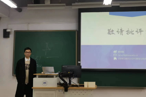 在科研领域,廖伟骏更是锐意进取。博士毕业后,廖伟骏放弃了回到澳门高薪的工作机会,寻求了确信可靠性理论的创始人康锐教授为博士后合作导师,选择继续深耕于确信可靠性基础数学理论的研究,他的研究成果——不确定回归分析奠定了基于不确定理论的可靠性统计方法,荣获“不确定理论杰出成就奖”。他主持了国家自然科学基金青年项目和国家重点实验室基金,发表了26篇SCI检索论文,并在10多个国际及国内学术会议上以大会报告的形式分享最新研究成果。廖伟骏现在加入了学院的确信可靠性中心,谈及中心他表现出无比的自豪:“中心致力于可靠性科学原理的研究,形成了一套覆盖全系统、全场景、全周期的颠覆传统可靠性技术的确信可靠性技术体系,在国家重大工程、各大经济主战场和人民生命健康领域得到了全面的应用。”