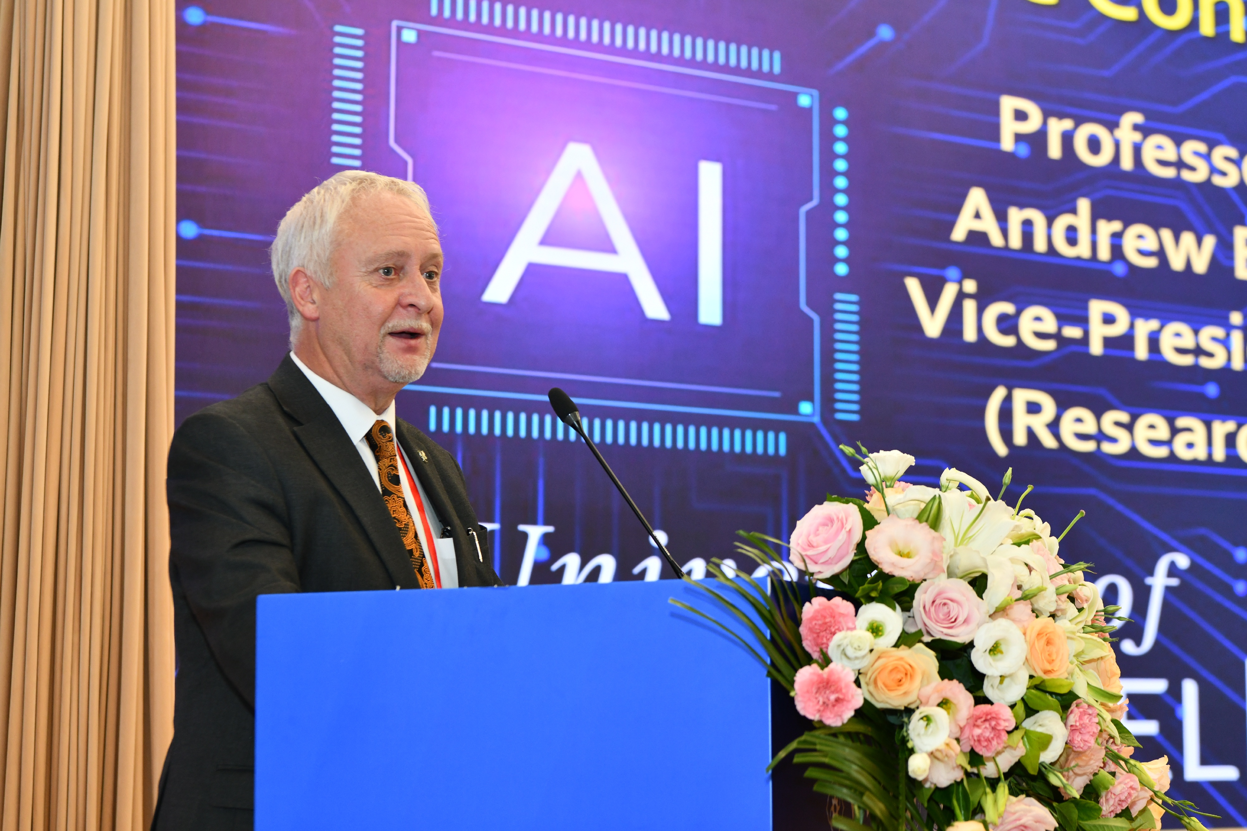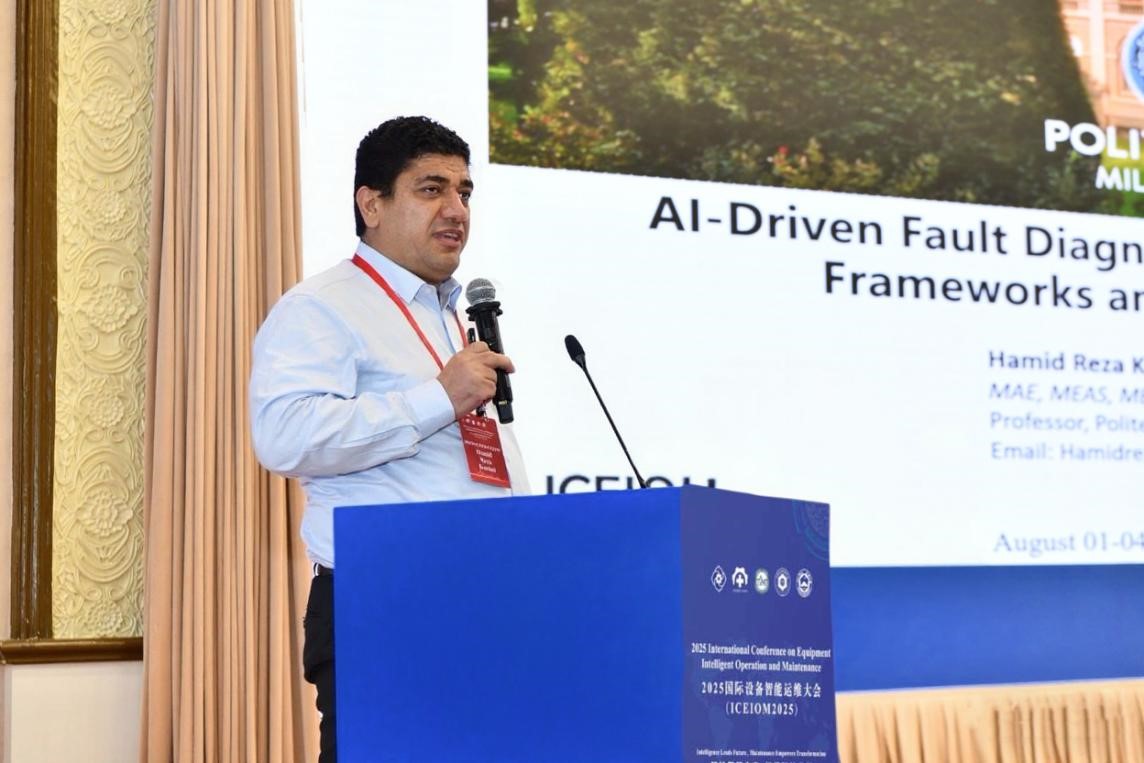 英国哈德斯菲尔德大学副校长Andrew Ball教授,日本名古屋工业大学副校长、IEEE Fellow,Makoto Iwasaki教授,南非工程院院士、比勒陀利亚大学Stephan Heyns教授,欧洲科学院院士、意大利米兰理工大学Hamid Reza Karimi教授,分别作了题为“Applications & Challenges of AI in Wind Turbine Condition Monitoring”、“Mechanical Vibration Suppression Techniques for Industrial Mechatronic Systems: Principle and Practice”、“Digital twins and hybrid modelling perspectives on intelligent equipment operation and maintenance”、“AI-Driven Fault Diagnosis for Rotary Machinery: Frameworks and Future Directions”的精彩大会报告。大会程序委员会主席、西安交通大学严如强教授主持开幕式,东莞理工大学李川教授主持大会报告。